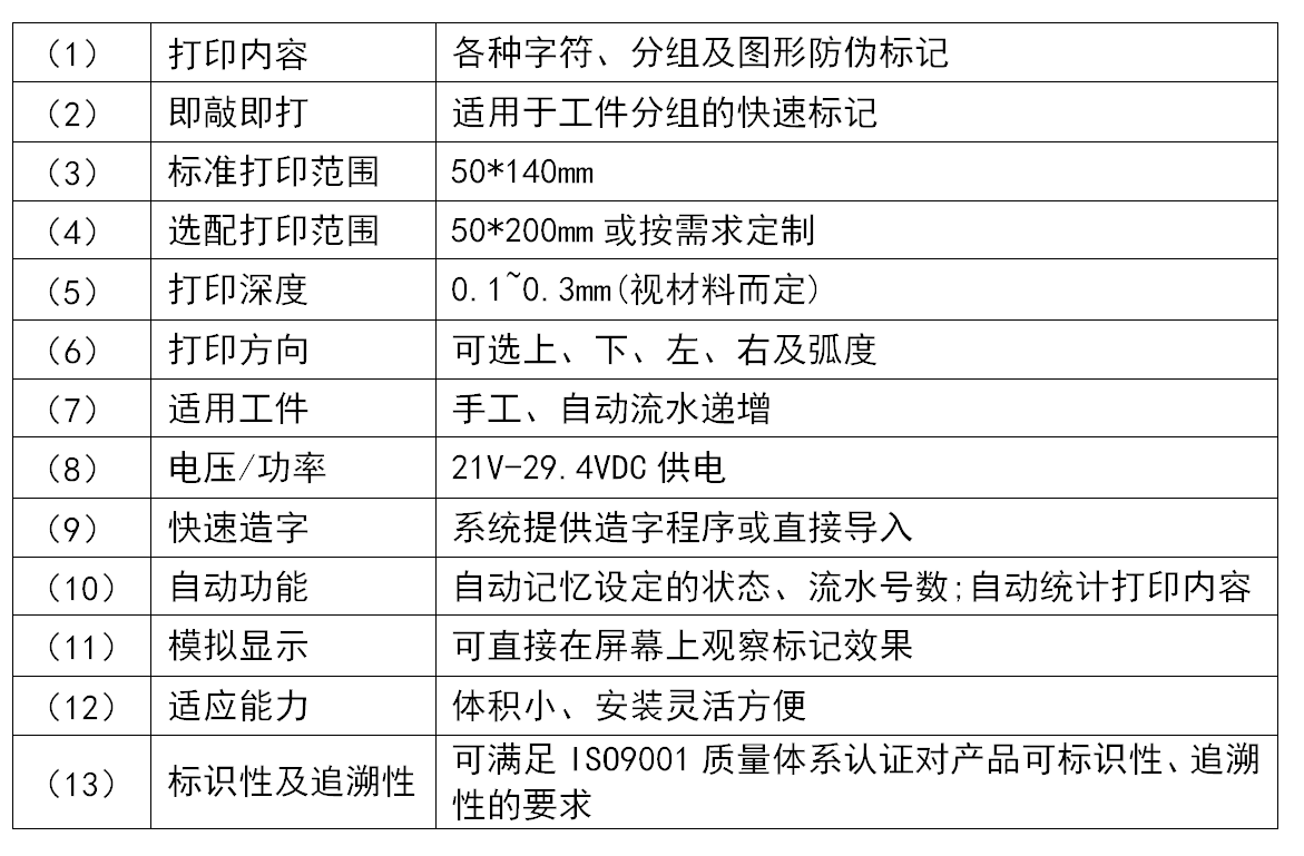 電動打標(biāo)機(jī)采用電磁為動能的方式替代氣動高頻微沖擊點(diǎn)陣打印,革命性的節(jié)省了氣源,同時大大降低了工作時的打印噪音,打印定位準(zhǔn)確,速度快,可廣泛應(yīng)用于汽車車身、鈑金件、銘牌等需要效果美觀、無需氣源、低噪音工作的場合,尤其適合鋁、銅、電鍍件、陽極化件等高檔產(chǎn)品的精美打標(biāo)。